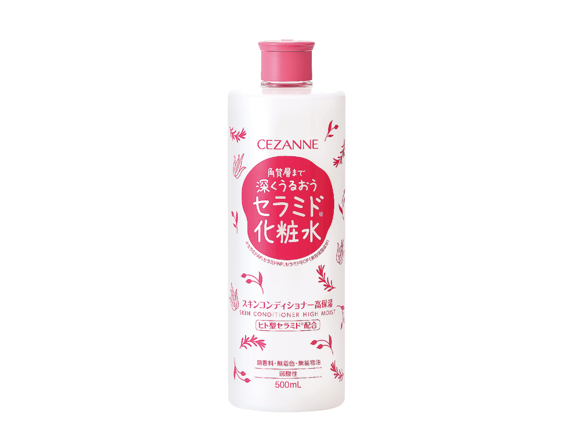 CEZANNE Skin Conditioner High Moist 500ml This lotion keeps the skin moist and protects from dryness via a moisture barrier formulation. [Featured Point] Contains - 3 kinds of Human Ceramide (CeramideAP, NP, and EOP) - 3 kinds and different sizes of Hyaluronic Acid (Sodium Hyaluronate, Sodium Acetylated Hyaluronate, and Hydrolyzed Hyaluronic Acid) - Collagen (Succinoyl Atelocollagen) - 7 Essential Amino Acids (Serine, Lycine, Glycine, Alanine, Arginine, Threonine, and Proline) - Job's tears extract [Gentle to Skin] Free from fragrance, colorant, mineral oil, and alcohol. [Hot to Use] - After washing your face, take an appropriate amount onto a cotton pad or your hands and apply it to your skin. - Can be used for body as well.